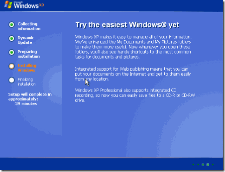 Step 4: After the Restart, computer will begin installation and you will see, ‘setup will completed in approximately: 39 minutes’ on installation window shown below.